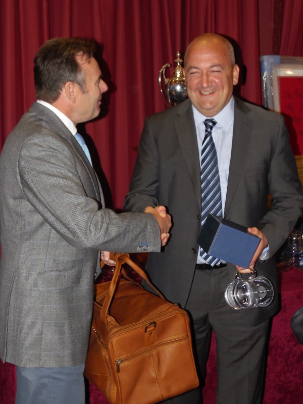 2. Photograph of Steve Penman, Seaking Electrical, receiving a special prize to commemorate his hole in one at the 15th, John Syvret, Chief Executive, Cammell Laird Limited.
