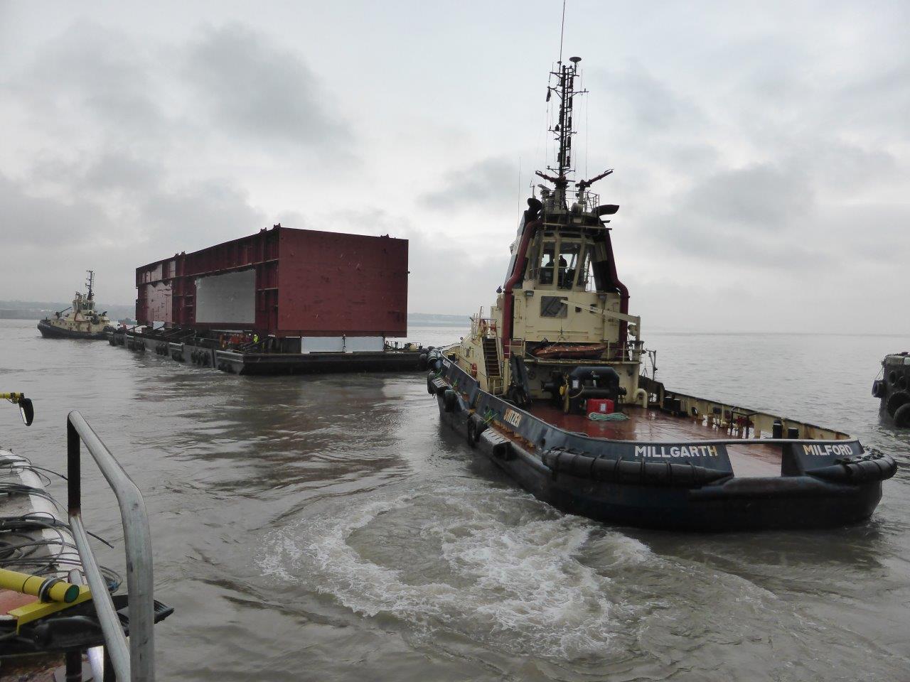 Prince of Wales sections being towed up down the Mersey en route to Rosyth.